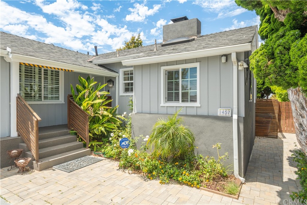 Elegantly styled home with a great indoor/outdoor living environment. Enter into a wonderful light filled living room with a high truss ceiling and wall of windows overlooking a lushly landscaped garden setting. The central fireplace adds another element to enjoy the ambiance of this home. The updated kitchen is designed to create an efficient space for cooking. The bedroom wing consist of 2 bedrooms and 2 remodeled bathrooms. The beautiful grounds allow for great outdoor entertaining and space to relax. The home is beautifully accented with wood styled flooring, recessed lighting and skylights. A great feature is the custom designed 2 car garage with finished floors, custom cabinets and work station. A Great opportunity to live in a turnkey home with future expansion capabilities and easy access to schools and the amenities of Manhattan Beach.