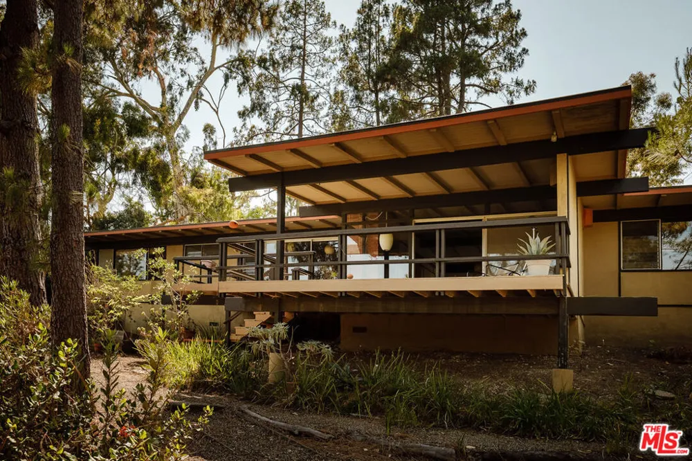 The Mitchell Residence, by architects Buff, Straub & Hensman (1959). Offered for only the second time since built- this distinctive and lovingly cared for home remains miraculously in almost entirely original condition. Situated on more than an acre in Rolling Hills Estates, the house embraces a tranquil and incredibly private setting with expansive floor to ceiling glazing. Exterior and interiors have been blended together seamlessly, with living spaces and adjacent decks placed amidst the towering pines to bring nature into every room. A split level delineates the open plan dining area, family room, and kitchen from the sunken living room and its monumental fireplace with cantilevered mantle. The details are exceptional: signature post and beam vocabulary, translucent glass screening, original light fixtures, and clever and abundant built-in cabinetry. Mature California native plantings populate the surrounding gardens. An idyllic canyon retreat with panoramic city and mountain views, ocean breezes, and a sense of solitude that belies its close proximity to the vibrant beach communities nearby.