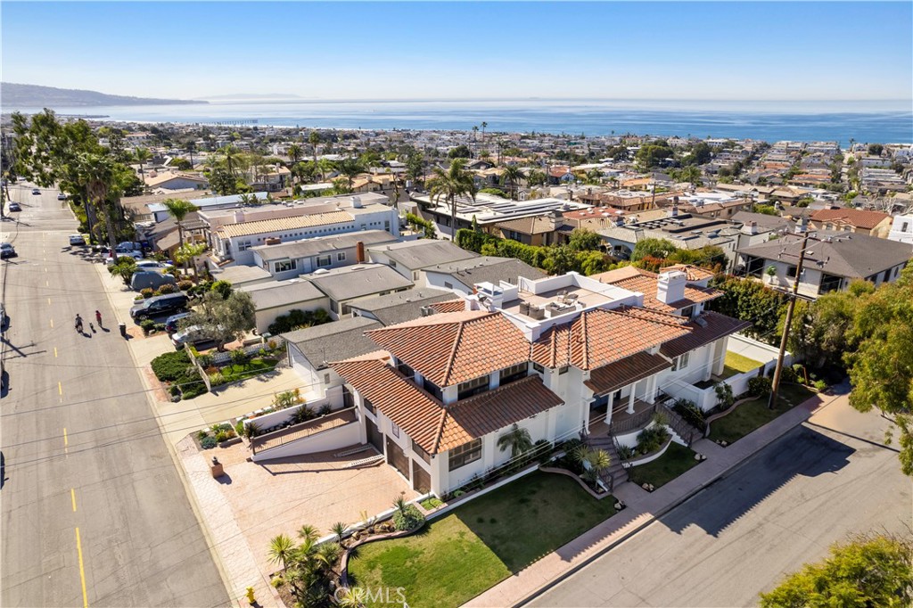 Sitting on a corner lot in the picturesque Hill Section, this sprawling three-story, 5700 square-foot Mediterranean represents a historical moment in Manhattan Beach history. Built in 1985 by the esteemed Steve Legare, the home was the first large residential property of its kind. Standing on a 6501 square-foot lot, this classic build is perfect for any buyer who needs space. The foyer features a gorgeous curved staircase, a piece of functional artwork wowing from the moment of entry. Ascend to find the heart of the home - living room, dining room, and expansive kitchen/family room. The vaulted cedar ceilings create height and enhance the sense of vastness. Arched, full-length windows throughout the home offer incredible views from Downtown LA to Catalina. Built to entertain, this home includes three fireplaces, an old-school built-in bar, and ample room to mill about - a staple characteristic of this home that seems to never end. The ground floor hosts four bedrooms, including the spacious Owner’s Suite, complete with a sprawling bathroom and cedar walk-in closet. One bedroom/office with en-suite and two bedrooms with a Jack and Jill connector are perfect for large families or empty nesters in need of extra space. Descend to the basement for a massive spare bedroom with en suite, spacious laundry room, wine cellar, and gym complete with sauna. Just when you think the house cannot offer any additional space, the six-car garage provides more. The home is topped, literally and figuratively, by its 200+ SF rooftop deck, a luxurious relic from pre-zoning days. The deck is one of the highest points in Manhattan Beach, level with the 5th St. water tower. Enjoy panoramic, unblocked views of the San Gabriel Mountains, Downtown LA, Catalina Island, and nearly every street of the beloved Manhattan Beach.