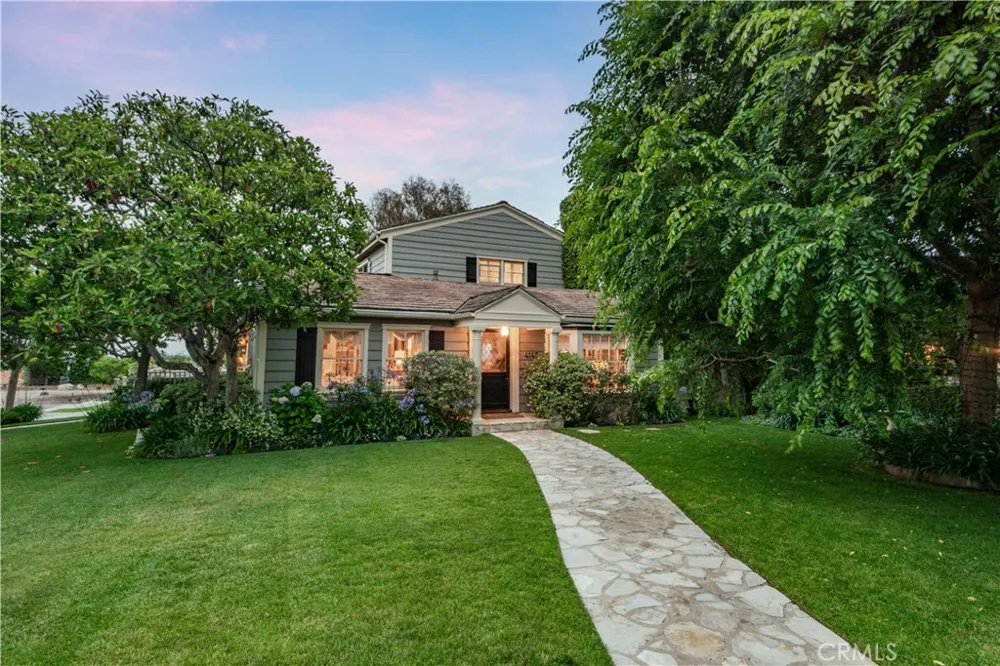 Set on an expansive corner lot in the highly sought-after Valmonte neighborhood, this iconic Cape Cod-style residence seamlessly combines timeless elegance with luxurious modern living. A classic Dutch door with leaded glass opens to a warm and inviting interior. The light-filled living room features a wood-burning fireplace, bay window, and a built-in surround sound entertainment system. A secluded guest bedroom and full bath on the main level offer privacy and comfort for visitors or in-laws. The formal dining room is ideal for entertaining, with seating for up to 12 and custom corner built-ins that add charm and function. The gourmet kitchen is a chef’s dream—appointed with a Viking range and griddle, double ovens, dual dishwashers, marble countertops, limestone center island, and premium stainless steel appliances. Just off the kitchen, a cozy den offers the perfect spot to relax or read, with French doors that open to a spacious side yard and PV stone patio—ideal for seamless indoor-outdoor living. The resort-style backyard is a true retreat, featuring a sparkling pool and spa, built-in grill, fire pit, and a beautifully manicured lawn. Upstairs, the expansive primary suite enjoys sweeping city lights views, vaulted beam ceilings, Pine hardwood floors, and a comfortable sitting area. Antique 8-foot Belgian wood doors lead to a luxurious primary bath with dark Emperor marble floors, Nu Heat radiant heating, a Jacuzzi tub, an oversized walk-in shower with dual showerheads, and a vast walk-in closet. A separate children’s wing includes a playroom and a full bathroom. Additional features include custom hand-crafted cabinetry, new central A/C, and an attached 2-car garage. This rare Valmonte gem offers a perfect blend of classic Cape Cod style and stylish California living.