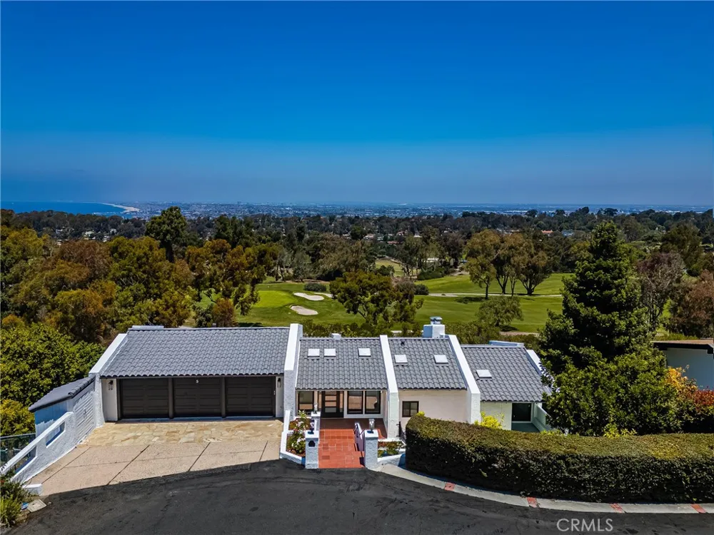 Tucked away on a quiet cul-de-sac and directly across from the prestigious Palos Verdes Golf Club, this beautifully updated home sits on an expansive 20,000+ square foot lot and offers commanding views of both the golf course and the Pacific Ocean from six private balconies. Bordering Malaga Cove / Palos Verdes Estates, the home boasts nearly 3,900 square feet of living space. The property features a reverse floorplan that places the main living areas and primary suite on the upper level, perfect for enjoying the sweeping views, while the majority of the bedrooms are privately tucked below. Both levels offer a light filled layout with brand new LaCantina win-doors and windows that bring the outdoors in. The spacious living room, formal dining area, and open kitchen flow effortlessly to expansive view decks, ideal for entertaining. The kitchen is equipped with matte white Café appliances that combine high end design with professional grade performance. The upstairs primary suite features a fireplace, walk-in closet, and its own private balcony. A guest powder room completes the upper level Downstairs, the home includes a second primary suite, ideal for guests or multigenerational living, plus two additional bedrooms that share a full bathroom. A large family and game room with a fireplace and built-in bar anchors the lower level, along with a dedicated laundry room and generous storage space perfect for a wine cellar or additional use. This home has been extensively upgraded throughout, including all new PEX plumbing, complete electrical rewiring, dual zone HVAC with two new heaters, two air conditioning units, all new ducting, and designer air registers. A tankless gas water heater, new Toto bidet toilets, Brizo plumbing fixtures, and a Generac backup generator add comfort and convenience throughout. All renovations and upgrades were completed with proper city permits and approvals, ensuring quality, safety, and long term peace of mind. The finished three car garage features vaulted ceilings, recessed lighting, and space for a car lift, while the wide driveway provides ample additional parking. The landscaped backyard includes mature fruit trees and space for a future garden or retreat. With thoughtful updates, panoramic views, and a prime location, 5 Yellow Brick Road offers a rare opportunity to enjoy refined coastal living with comfort, style, and room to grow. Seller will consider offers with Buyer concessions.