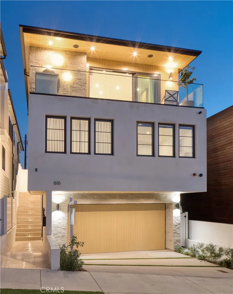 Welcome to 616 12th street. A jewel crafted by TRI west development in 2022. Perfectly positioned in one of Manhattan Beach's most coveted locations, this residence is surrounded by prestigious high-caliber homes where the hill section and sand section converge into the vibrant downtown. As you step inside, You immediately are taken with the breathtaking 180-degree ocean views that greet you through the expansive floor-to-ceiling windows, framing the beauty of the endless horizon. Boasting 5 bedrooms and 5 baths, spread across 4300 square feet. A 3 stop elevator cleverly disguised by a fluted exterior, this home provides a generous space for the modern family. Also on the top floor, you'll discover a chef's dream in the form of a large ocean view kitchen. An exquisite Arabescato marble island takes center stage, surrounded by ridged oak cabinetry and adorned with smart top of the line appliances. A spacious dining area sets the stage for memorable gatherings with loved ones. The indoor-outdoor living room on this level is a haven of relaxation, featuring comfortable seating and floor-to-ceiling sliders that disappear into the walls. The doors open to reveal an inviting ocean view deck, perfect for savoring the salty sea breeze and embracing the serenity of coastal living. The primary suite is a true retreat, complete with a single-slab fireplace, a mitered headboard wall, and a luxurious custom walk-in closet. The primary bath exudes opulence, with a mixed-marble floor, bleached cedar walls, dual sinks, a TV, a soaking tub, a marble shower, and elegant brass accents. There are also three well-appointed bedrooms conveniently located on this level with high ceilings, solid wood doors and lots of natural light. The first floor features a ground floor entertainment room, A temperature-controlled wine room, a separate bedroom and full bath provide comfort and flexibility. The inviting ground floor room is bathed in natural light through the large floor-to-ceiling sliders that open to the outside. Here, an impressive wet bar awaits, catering to your entertainment needs. Throughout the house, beautiful wide plank hardwood floors add warmth and elegance. Modern amenities like air conditioning, control 4, security cameras and custom discreet automatic window shades enhance comfort and ease. A three-car garage with custom shelving and an electric car charging port, along with two exterior driveway parking spaces, ensure ample parking options. --